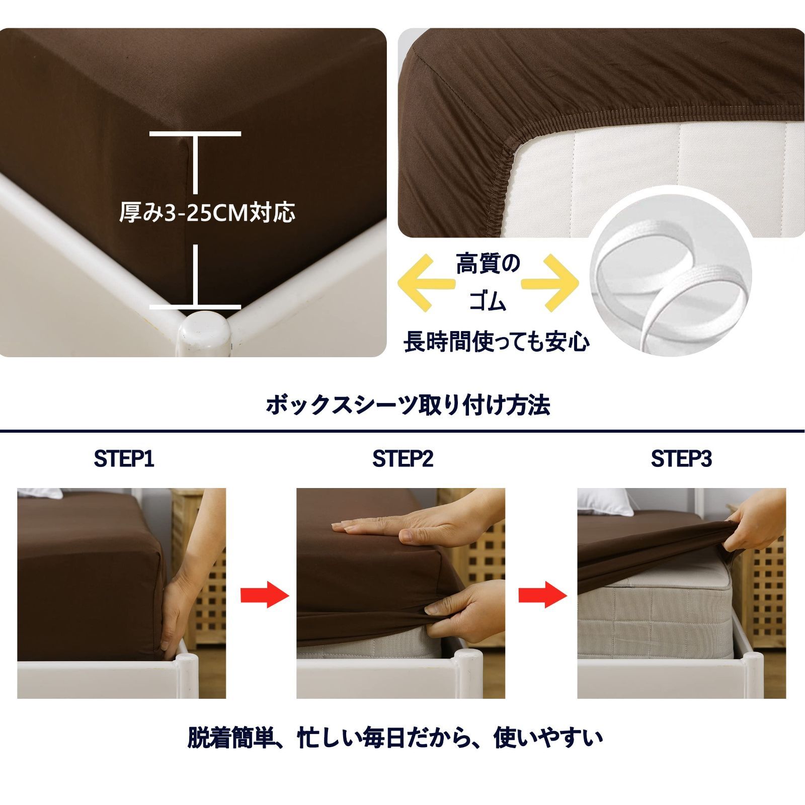 肌に優しい 丸洗いOK オールシーズン 全週ゴム付き シーツ 着脱簡単 毛玉なし マットレスカバー 綿100% ベッドシーツ ベッドカバー 速乾 ボックスシーツ マットレス・敷ふとん兼用 ブラウン