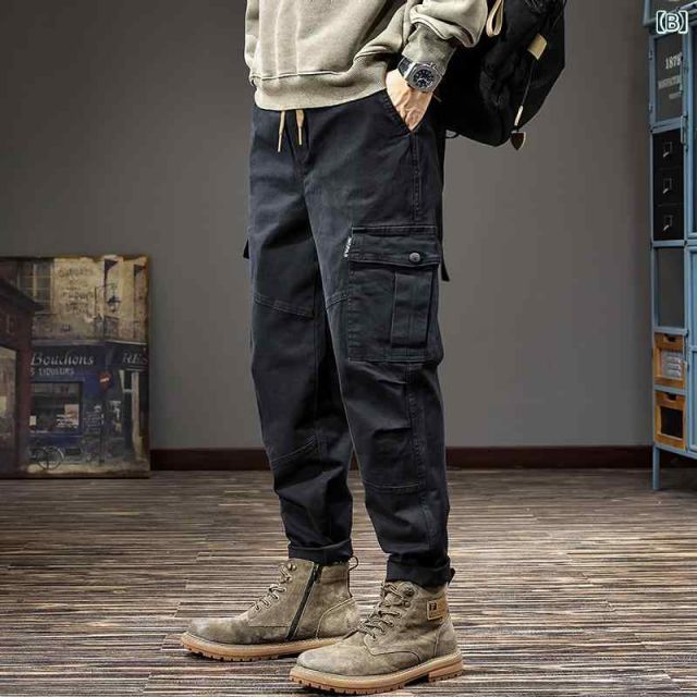 [31 ]メンズ ファッション 服 オシャレ シンプル 大 かっこいい 大きいサイズ ストリート 紳士服 秋 パッチワーク ストレート アメカジ パンツ マルチ ポケット テーパード スポーツ
