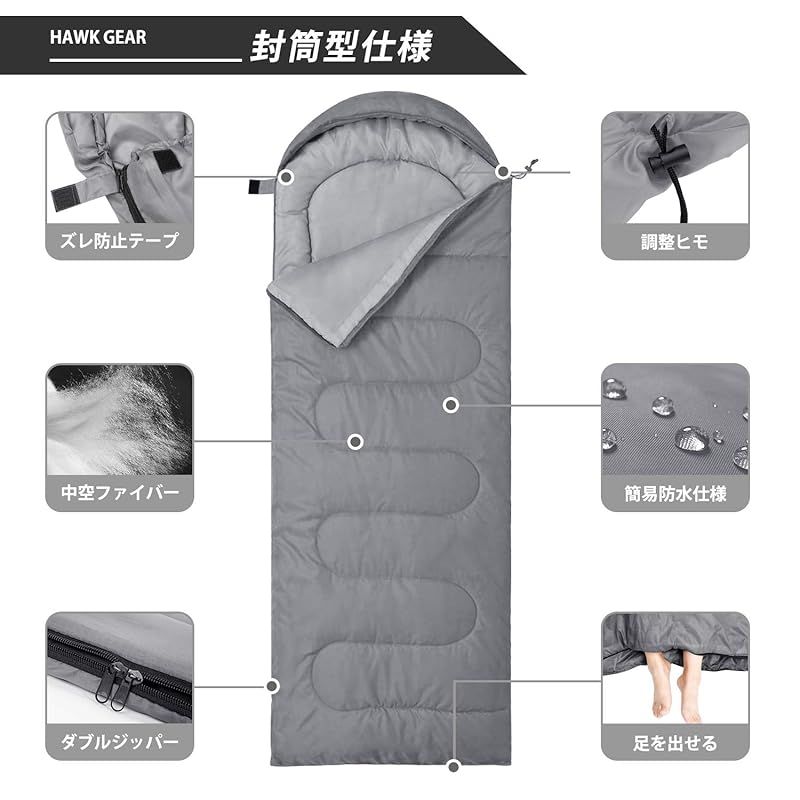 [HAWK GEAR(ホークギア)] 寝袋 シュラフ キャンプ アウトドア 簡易防水 オールシーズン (グレー) 0の検索結果