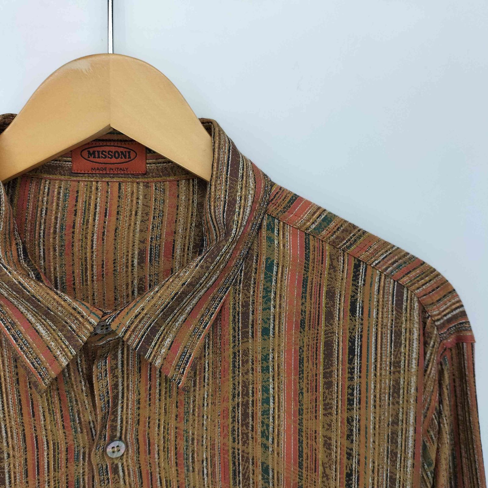 ミッソーニ MISSONI イタリア製 マルチストライプ コットン レギュラーカラーシャツ メンズ EUR:50