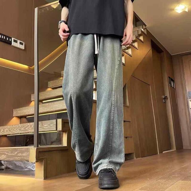 メンズ ファッション 服 男性用 オシャレ シンプル 大人 かっこいい 大きいサイズ ストリート 紳士服 レト ロー ジーンズ 夏 スタイル ダメージ 加工 ワイド レッグ パンツ ウォッシュド シル