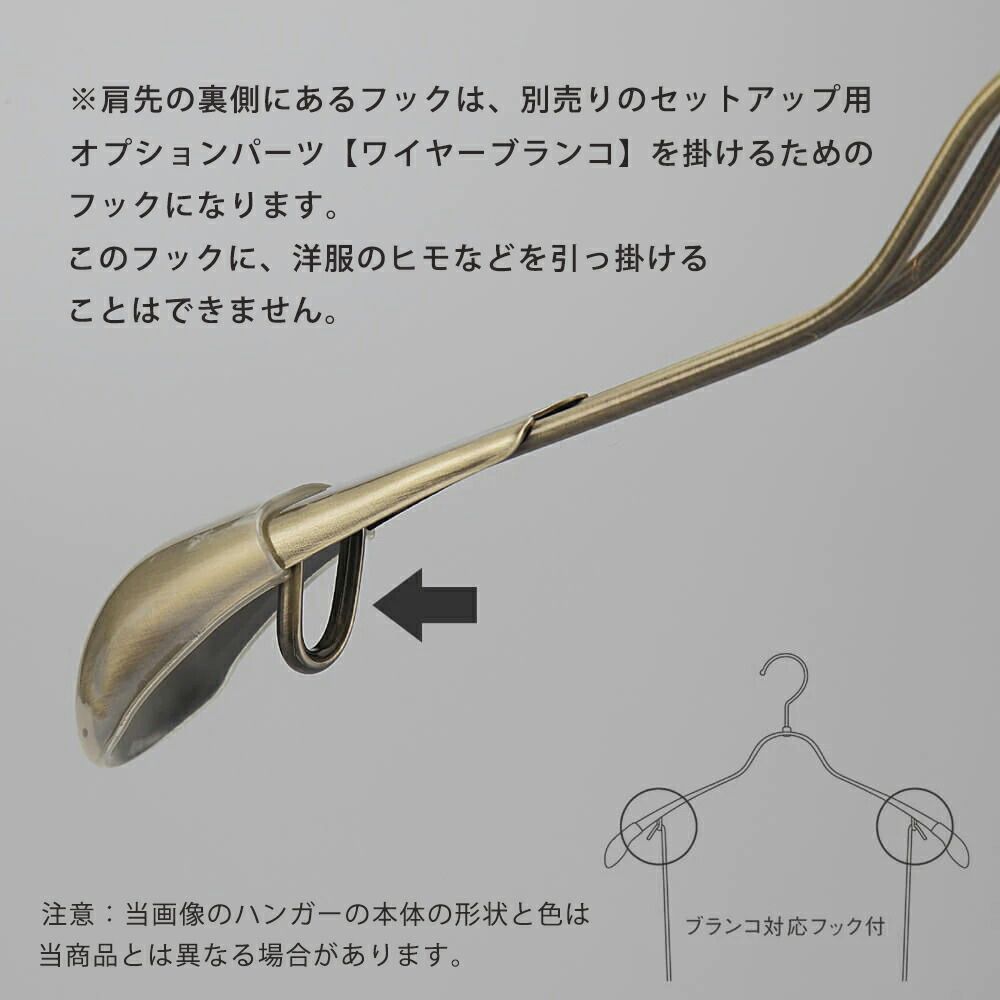 | 商品の特徴 | 生産国:日本 材 質:スチール 色 : ゴールドメッキ 寸 法:横幅375±10mm/肩厚40mm 形 状:前肩(湾曲型) フック:回転式 なで肩ハンガーのメリット オシャレでナチュラルな雰囲気を演出できます。 洋服の肩にハンガーのツッパリ跡が出にくい 衣類の大きさとハンガーの大きさをそれほど合わせる必要がない。 通常は衣類に合わせた適切なサイズのハンガーを使用しないと衣類の肩先にハンガーのツッパリ跡がつきます。 なで肩ハンガーのデメリット 服の首元が伸びやすい |