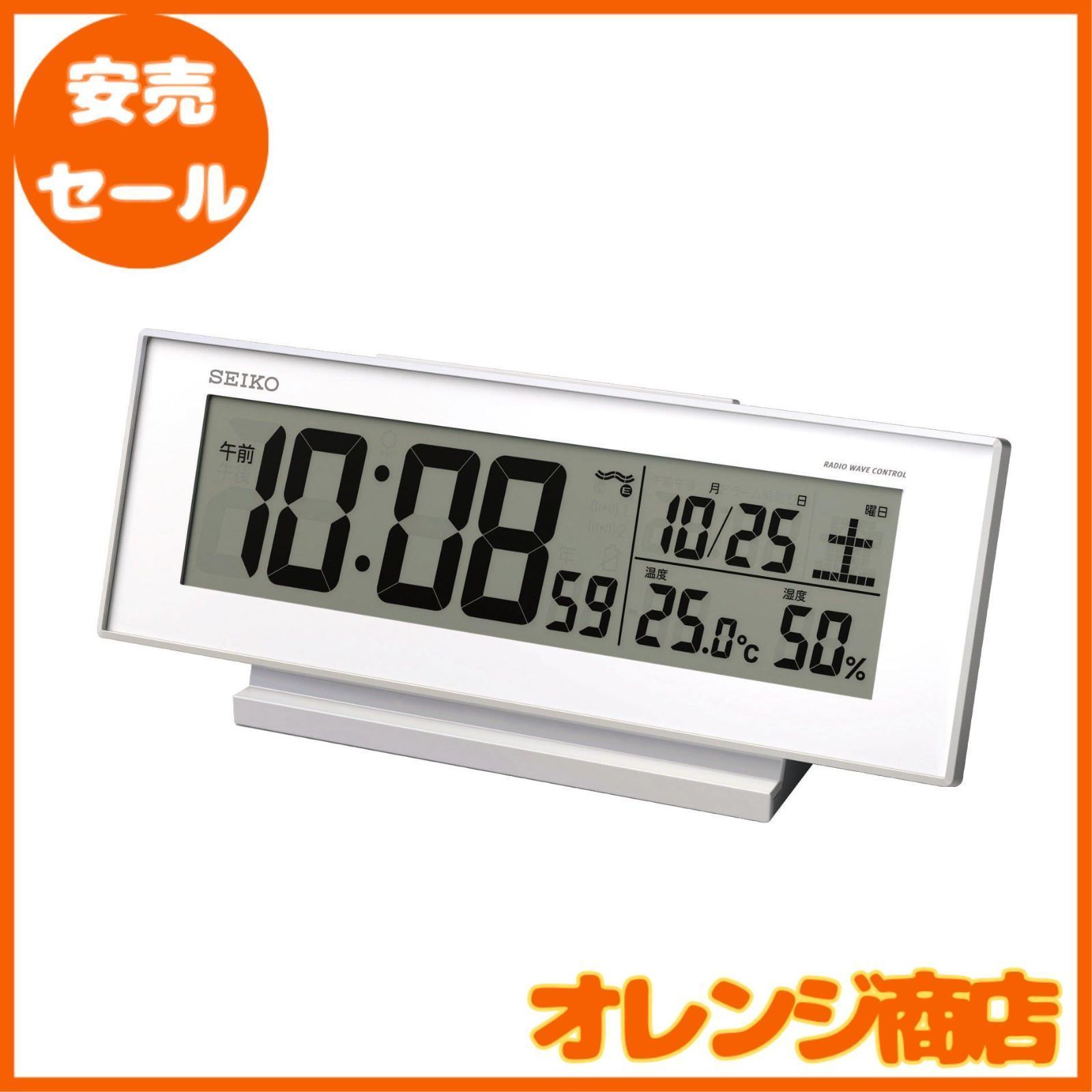 【大安売】セイコー クロック 目覚まし時計 常時点灯 電波 デジタル カレンダー 温度 湿度 表示 夜でも見える 白 SQ762W SEIKO
