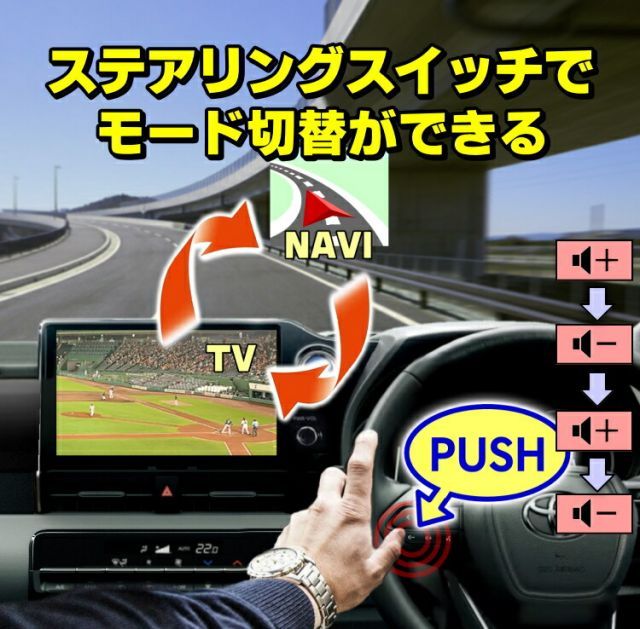 | 商品の特徴 | Z A202A ライズ(トヨタ)の価格・スペック情報{令和4年11月〜令和6年走行中にテレビが見れるテレビキット【商品型番TVD-016X】 商品説明 純正状態では、テレビ放送やHDMI端子に接続した映像機器が停車時しか見ることができません。 ドライブ中や高速道路の渋滞など、同乗者の退屈しのぎで走行中でも同乗者にテレビ放送を見せてあげたら大変便利ですよね。 ライズ A200A ⁄ A201A ⁄ A202A ⁄ A210A フロントバンパー RAIZE .そこで、考え出されたのが走行中でもテレビが見れるテレビキットです。 本製品装着後は、停車中、走行中問わずテレビ放送が見られるようになります。 : 新型 ライズ A200系 サンシェード RAIZE A200A⁄A210A・トヨタ/ダイハツ/スバル純正メーカーオプション9インチディスプレイオーディオまたは、9インチスマートフォン連携ディスプレイオーディオ対応(3枚目の写真と同じ機種かご確認ください) Action Decor「トヨタ ライズ 200系 2代目 に対応 2019年11月~ FOR・初心者でもカプラーオン簡単取付。 トヨタ ライズ A200系 型式A200A\u2044A210A\u2044A201A\u2044A202A.2019年11月-・希望者に車種別の図解説明書進呈 ・コントローラー部1年間、ハーネス部3年間の品質保証付 ・工場出荷時はエンジン始動時にテレビ視聴モードで本製品が起動するオンスタートモードを搭載。いちいちテレビ視聴する前にモード切替操作する手間を省きます。 ・本製品は、いざというときに走行中テレビ視聴できないノーマルモード(純正状態)に戻すことができます。 ステアリングスイッチの音量ボタン[+][-][+][-]と押すことでノーマル←→テレビ視聴モードを交互に切替可能。 ・別売りビルトインスイッチSW-050を接続することでワンプッシュで切替可能になります。 空きスイッチパネル1か所あるか現車にて確認してください。 空きスイッチパネルがない車両で物理的なモード切替スイッチがあったほうが良い場合は、貼付けスイッチSW-060を接続することができます。 別売りスイッチSW-050またはSW-060の購入はお客様の任意です。別売りスイッチを接続した場合、ステアリングスイッチの音量ボタンと別売りスイッチの両方でモード切替操作できるようになります。(SW-050とSW-060を同時接続できません) ・モード記憶機能搭載。 エンジンキーOFFしたときのモードを記憶しています。次回エンジン始動時にエンジンキーOFF直前のモードを引き継いで本製品は起動します。 ・本製品はブザーを内蔵しており、エンジン始動時やモード切替操作時にブザー音で現在のモードをお知らせします。また別売りスイッチ接続時はモードに応じてボタン内蔵LEDは点灯/消灯します テレビ視聴モード→ブザー音「ピピ」別売りスイッチLED点灯 ノーマルモード→ブザー音「ピー」別売りスイッチLED消灯 OBD車検対応! 取付後、継続使用しても車検は通ります。 取付および動作確認方法 本製品の取付場所はディスプレイオーディオ背面になります。車両側24ピンコネクターとディスプレイオーディオ背面の24ピンコネクターにカプラーオン装着。 エンジンキーOFF後、6分以上経過してからバッテリーマイナス端子を取り外し、本製品の取付作業を開始してください。 守らないとECUにナビゲーション通信途絶のエラーが残り、OBD車検で不適合判定されてしまいますのでご注意ください。 1.ディスプレイオーディオ背面に差し込まれている24ピンコネクターを抜く。 2.TVD-016Xのメスコネクターをディスプレイオーディオ背面の24ピンコネクターに差し込む。 3.先に抜いた車両側24ピンコネクターをTVD-016Xのオスコネクターに差し込む。 4.別売りビルトインスイッチを接続する場合、車両の空きスイッチパネルを取り外し、ビルトインスイッチをはめ込む。貼付けスイッチは両面テープで固定する。 5.スイッチハーネスをディスプレイオーディオ背面まで配線通しを使用して引き回す。 6.スイッチハーネスをTVD-016XコントロールBOXの5ピンコネクターに差し込む。 7.コントロールBOXをディスプレイオーディオ上面または背面の隙間スペースに固定する。 (復元時に干渉しないか事前に確認してください) 8.取り外しと逆手順でディスプレイオーディオおよびパネル類を復元する。 9.バッテリーマイナス端子を接続して、エンジン始動し本製品のブザー音「ピピ」がなることを確認。 ステアリングスイッチの音量ボタン[+][-][+][-]と押す→ブザー音「ピー」 別売りスイッチ接続あり時はインジケーター[消灯] ステアリングスイッチの音量ボタン[+][-][+][-]と押す→ブザー音「ピピ」 別売りスイッチ接続あり時はインジケーター[点灯] 別売りスイッチ設置しない場合は11へ 別売りスイッチを押す→ブザー音「ピー」:インジケーター[消灯] 別売りスイッチを押す→ブザー音「ピピ」:インジケーター[点灯] 10.ボタンの発光部が点灯するか確認する。(貼り付けスイッチはリング部微点灯する) 11.本製品をテレビ視聴モードにしてから周辺の安全を確認してから発進し、走行中にテレビ視聴できるか確認。 (必ず同乗