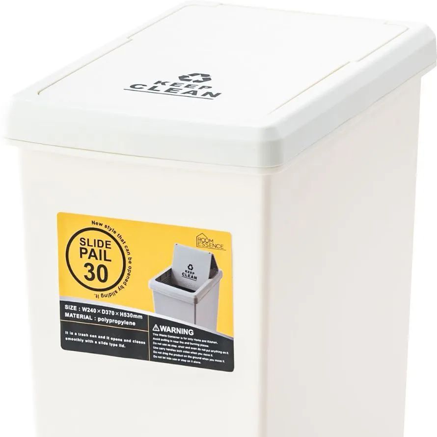 ゴミ箱 30L ダストボックス 屋外 屋内 キャスター付き ポリプロピレン ごみ箱 分別ゴミ箱 キッチン スライドロック式 スライドペール アースカラー ホワイト