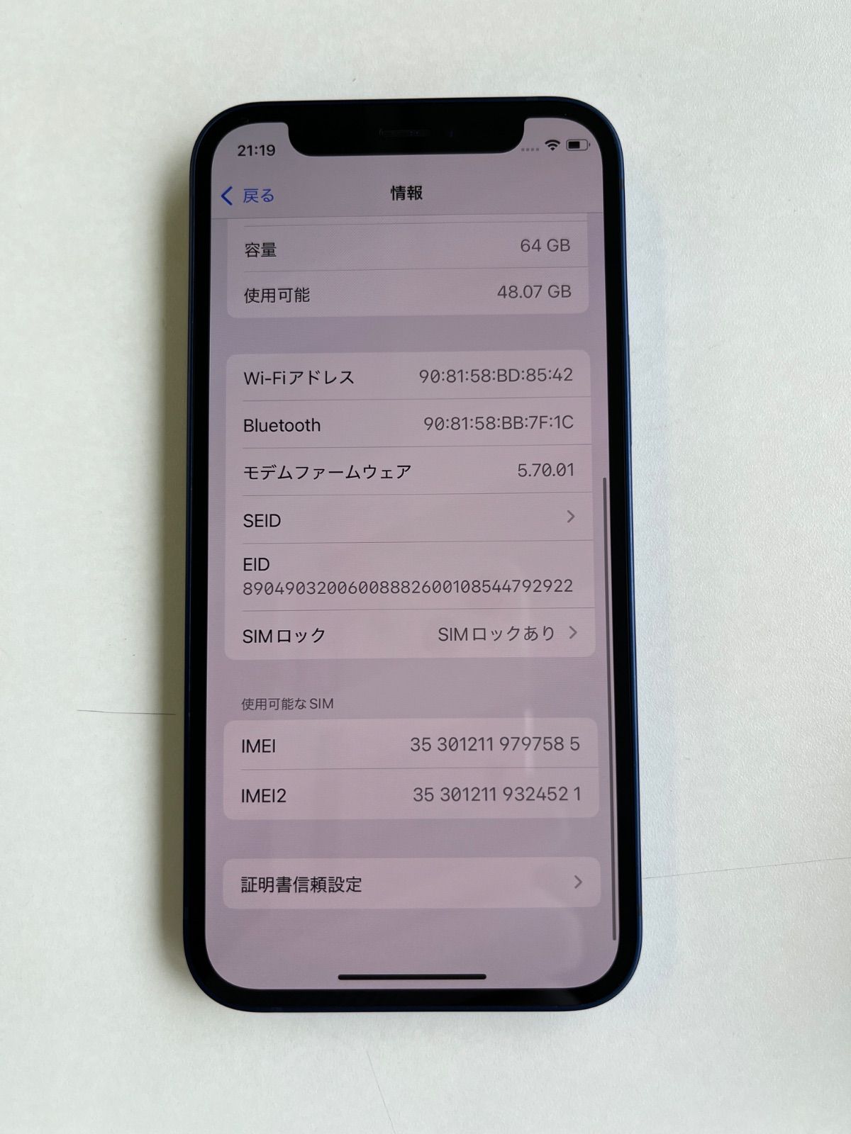 美品 iPhone 12 mini 64GB ブルー バッテリー100% MGAP3J/A - 7585の検索結果